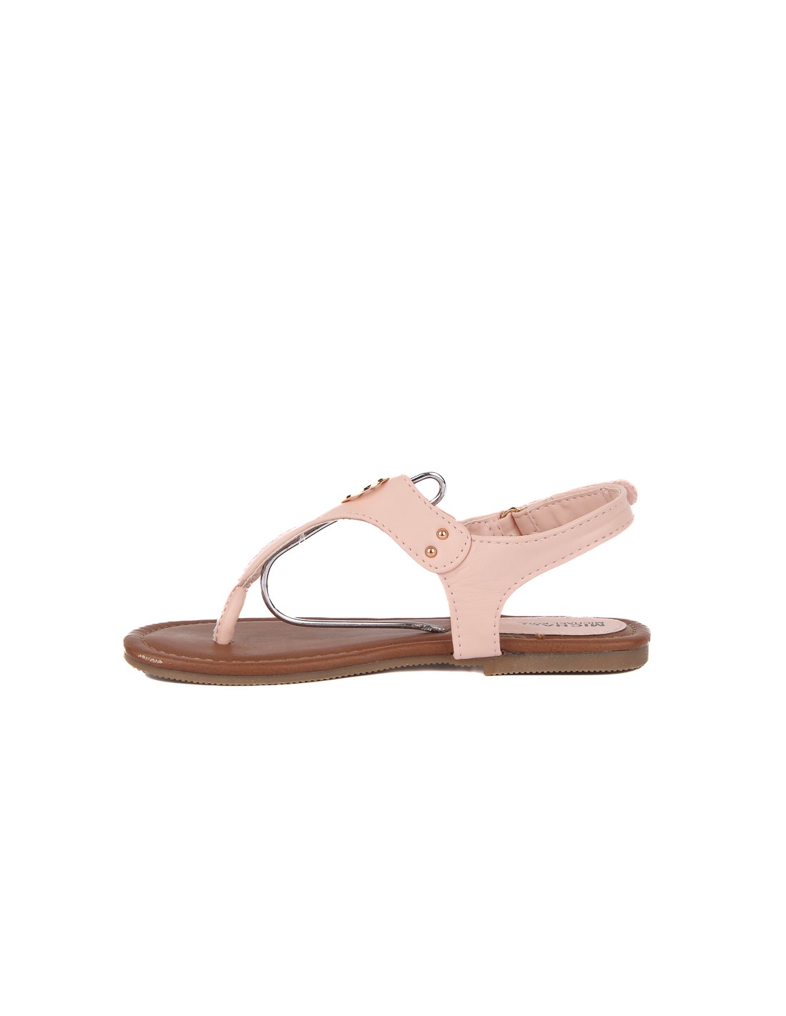 Sandalias de nina color rosado con tira y sujetador de velcro detalle de marca en dorado plantilla cuerina y suela de goma