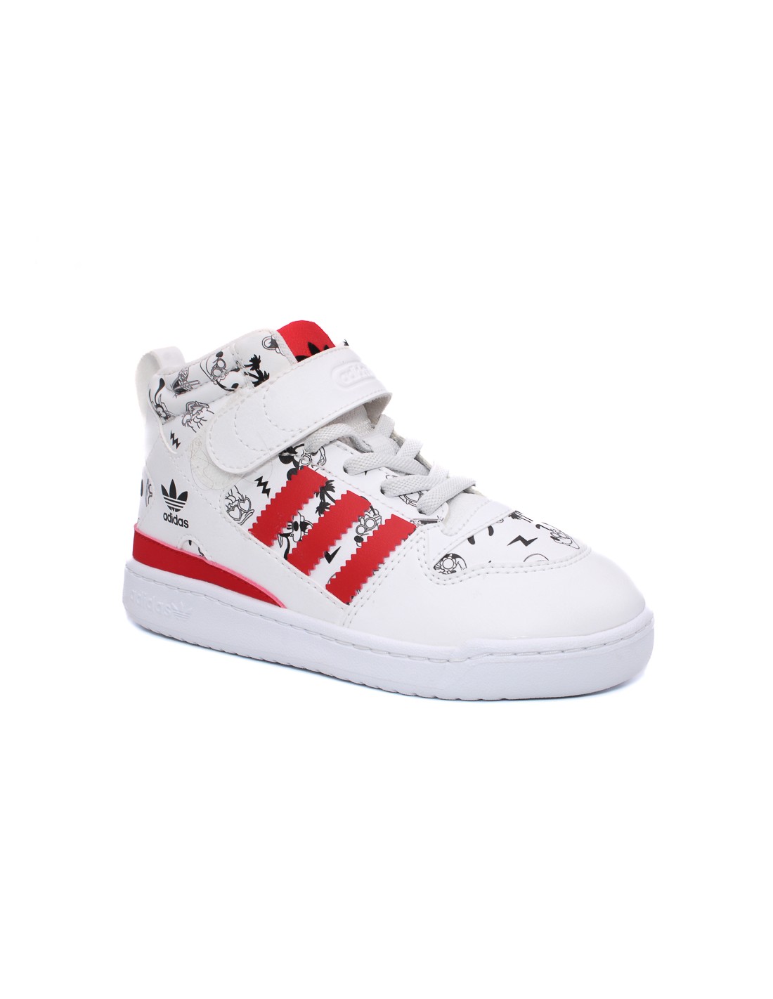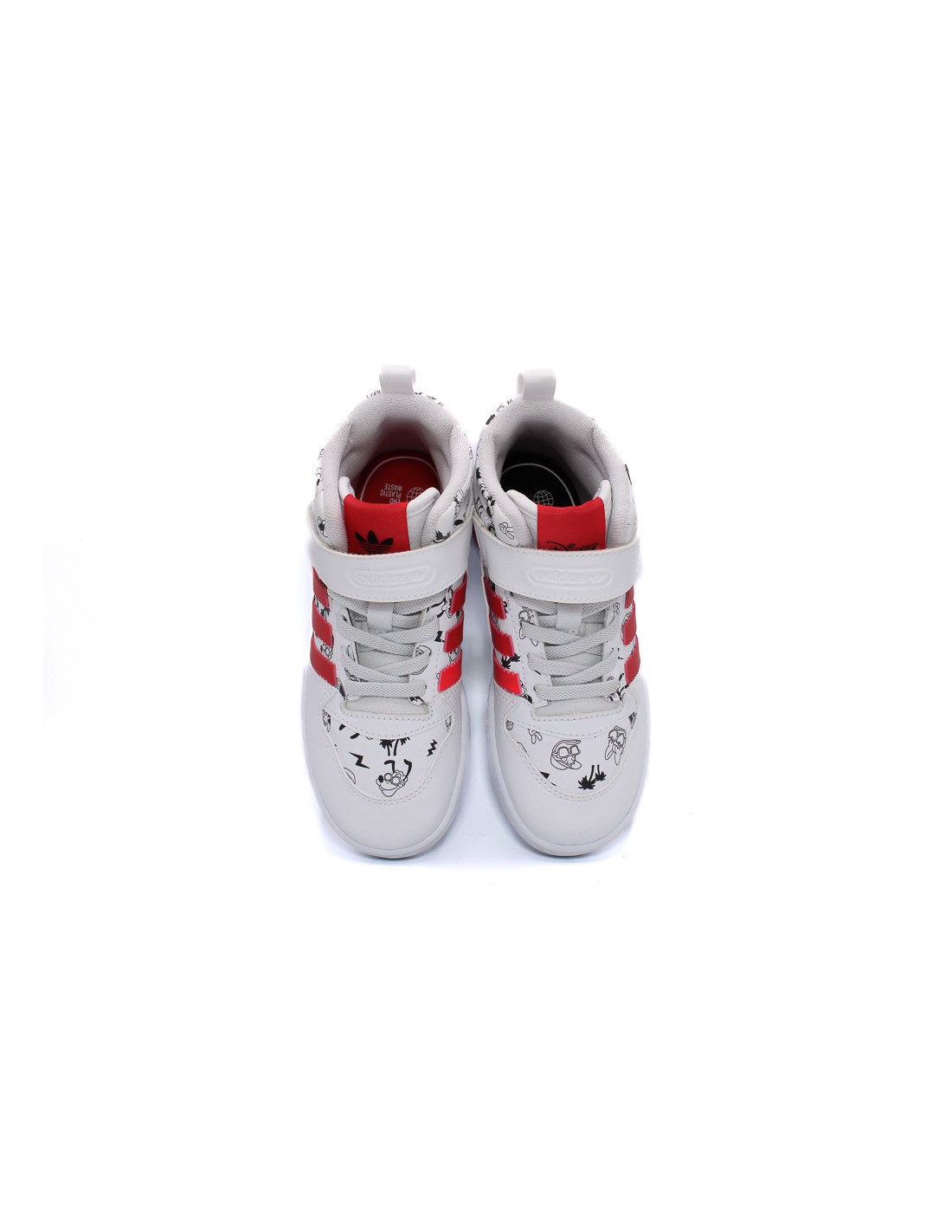 Zapatos de nino estampado de Disney color blanco con detalles rojo material cuerina suejtador de velcro y corodnes suela de goma