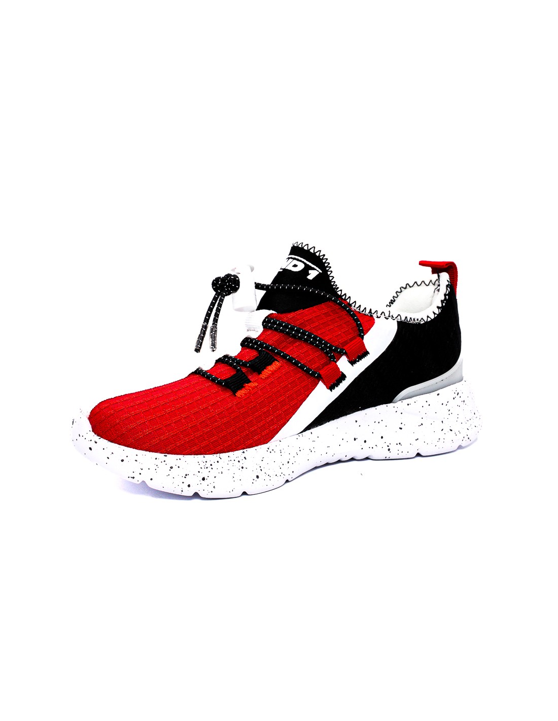 Zapato de nino colores rojo, negro y gris material malla transpirable y spandex con sujetador syela de goma