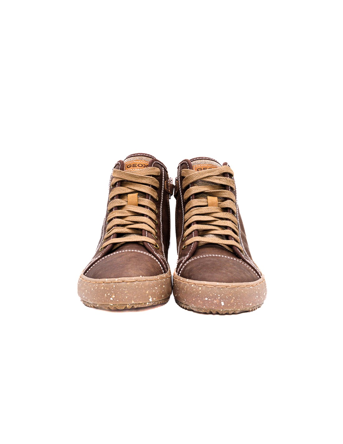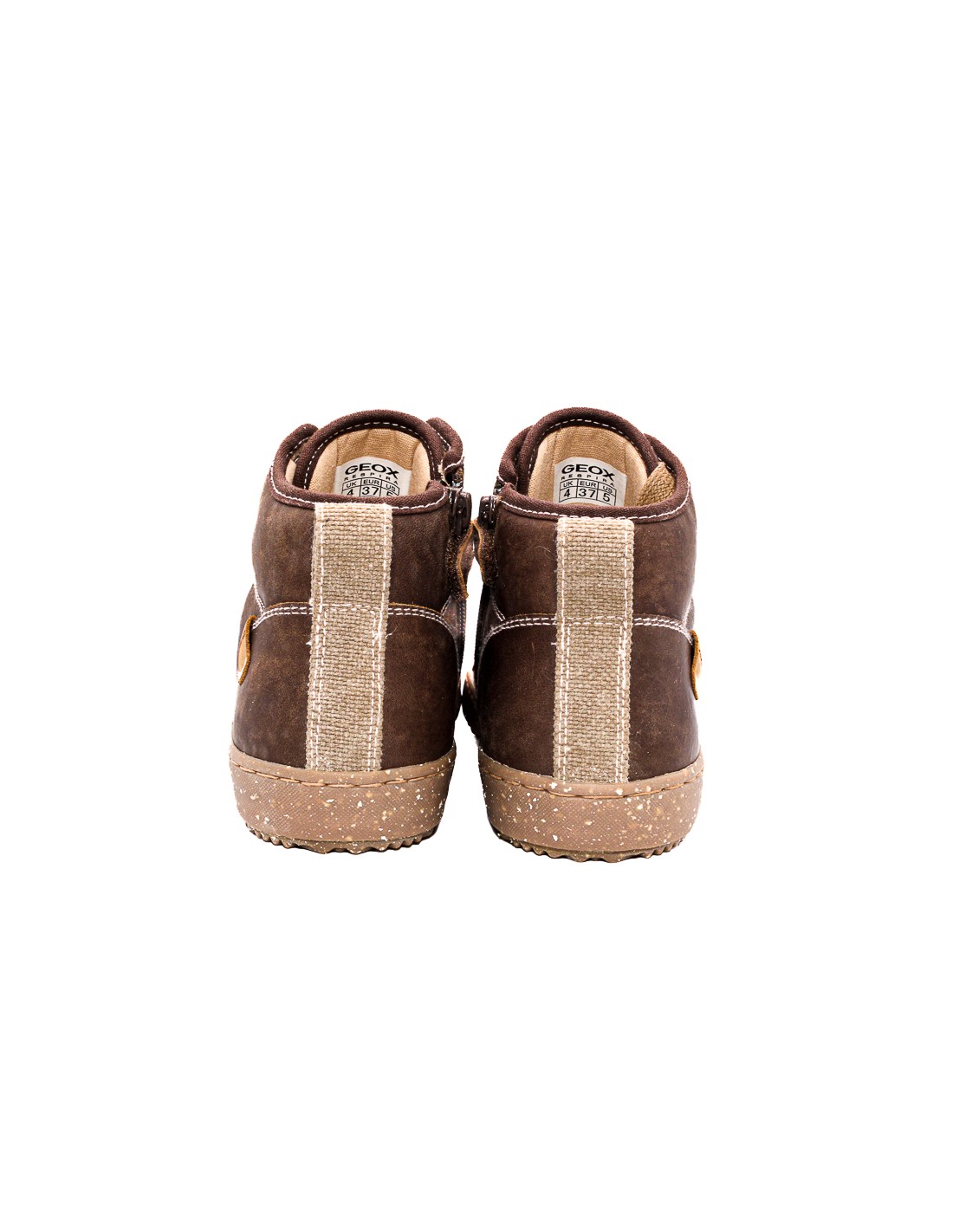 Zapato de nino color cafe oscuro con cordones material de cuerina y cierre lateral suela de goma suela con membrana impermeable