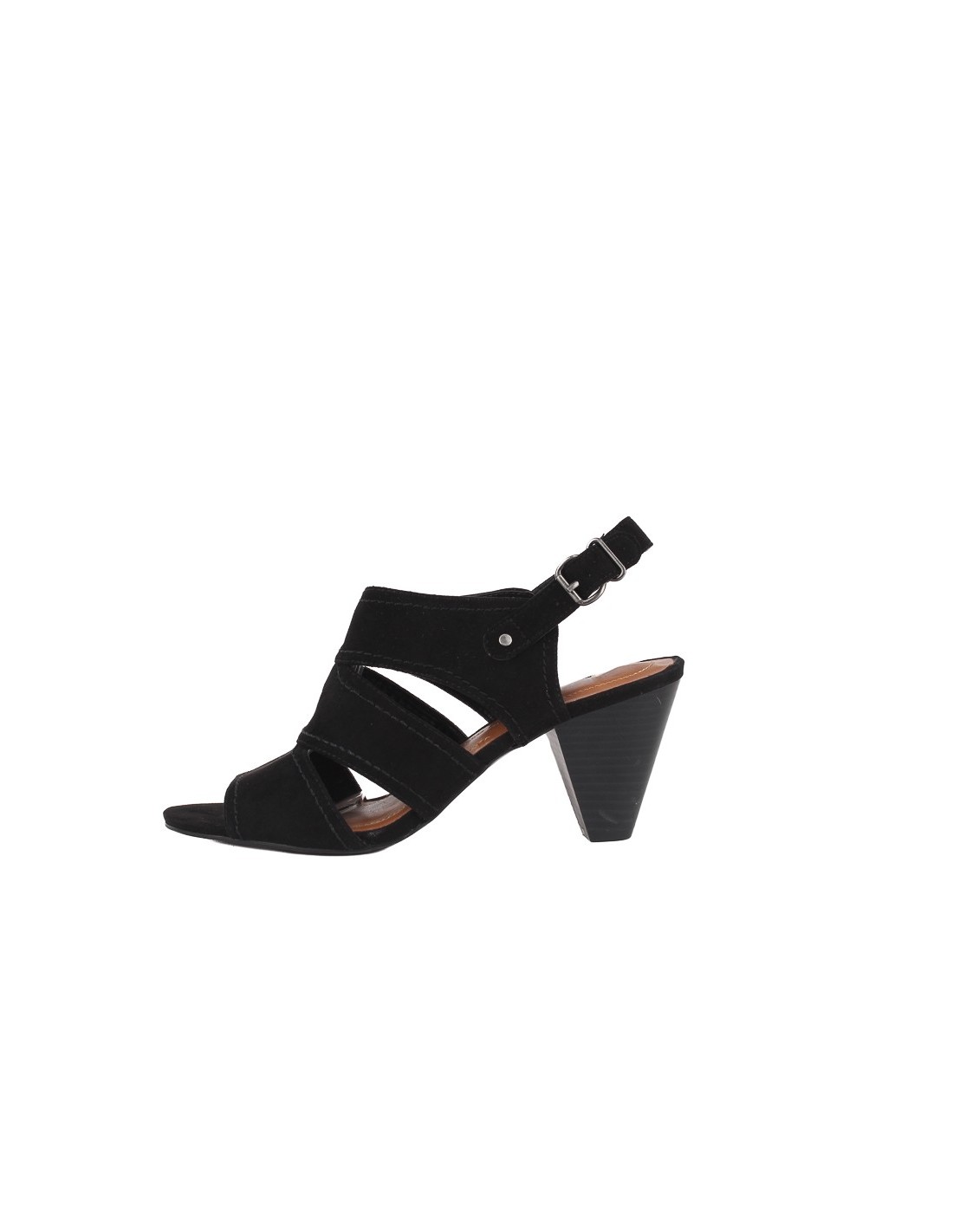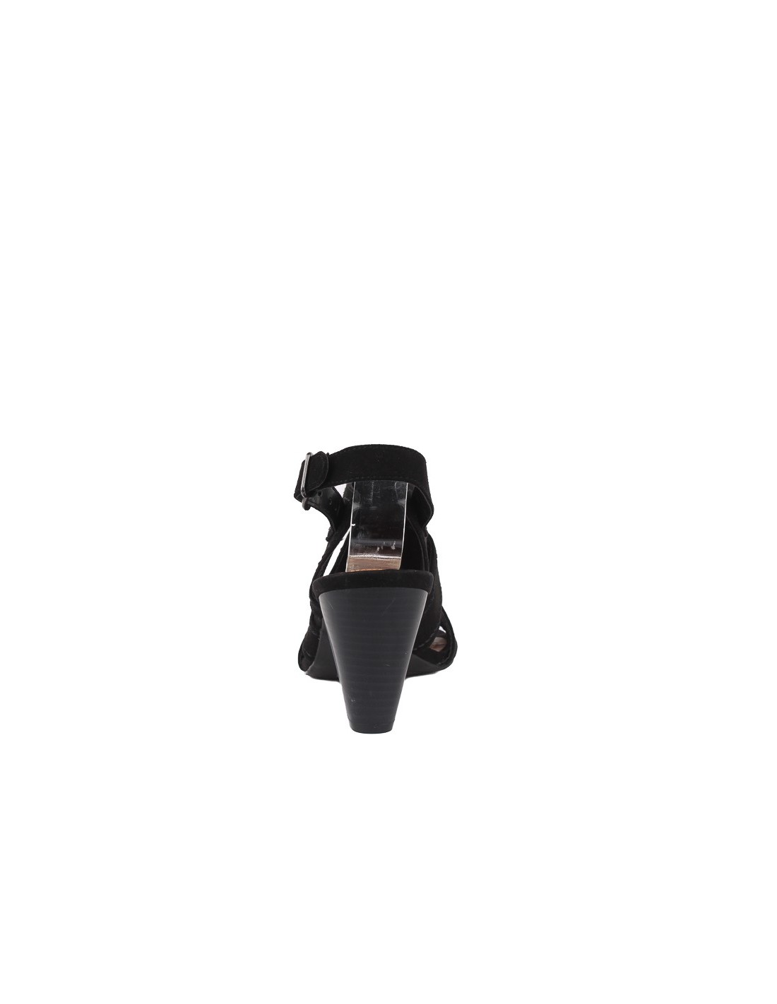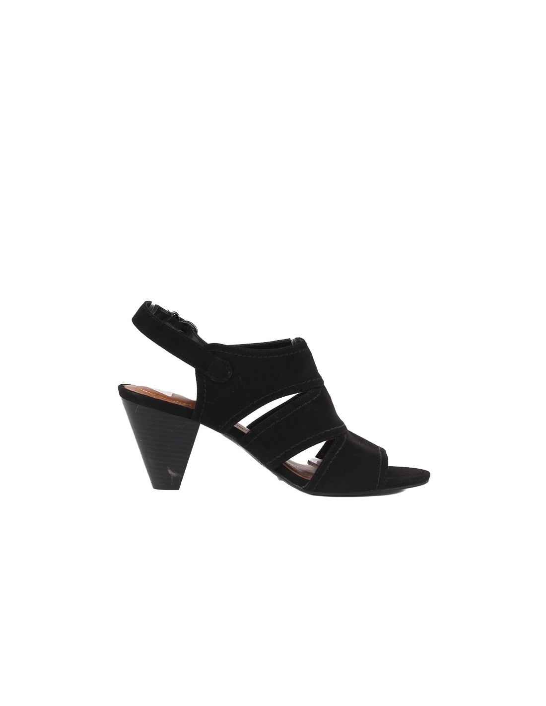 Taco de mujer color negro material gamuza de tiras punta abierta y hebilla posterior plantilla sintetica taco triangulo medio