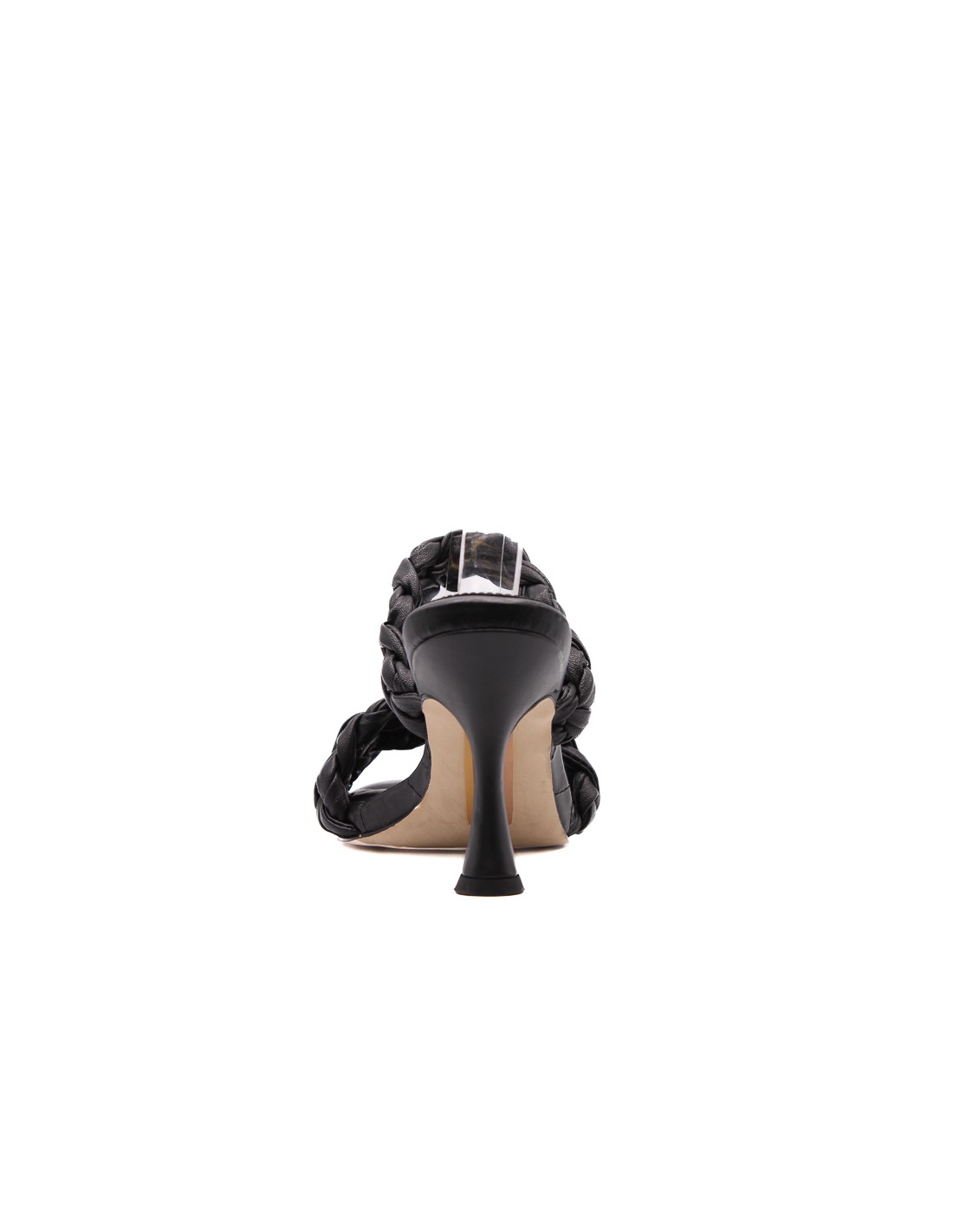Taco de mujer color negro con doble tira en trenza plantilla con textura material cuerina taco medio y suela sintetica