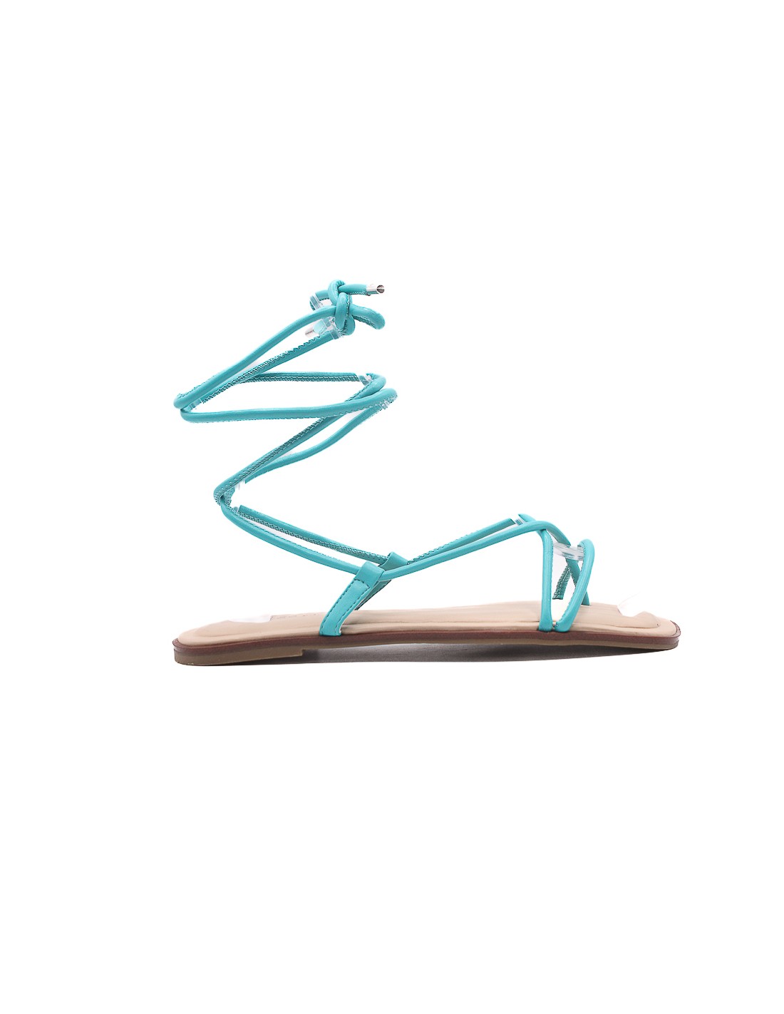 Sandalias de mujer de tiras color turquesa para amarrar material sintetico plantilla y suela material de goma