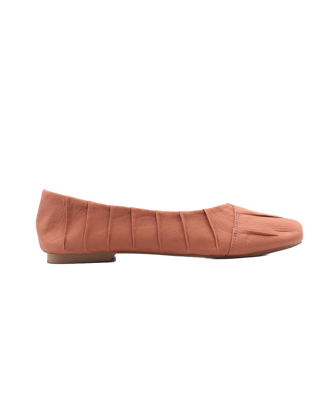 Balerinas de mujer color coral punta ovalada material de tela con detalles plantilla de corcho y suela mixta