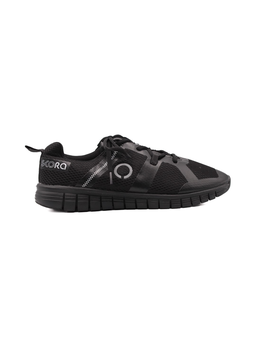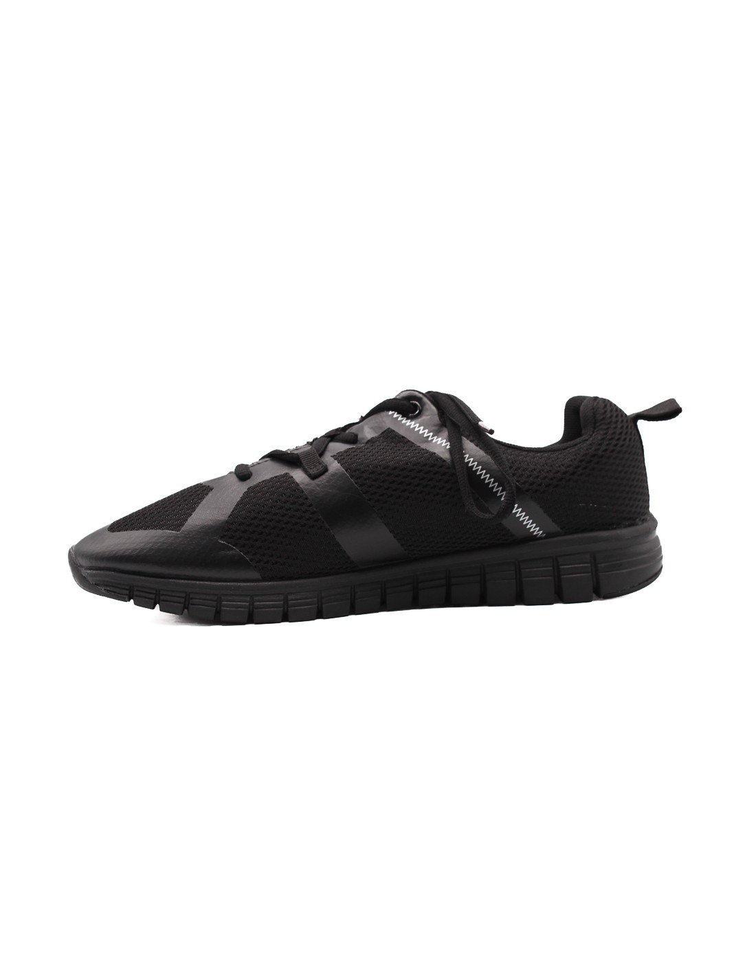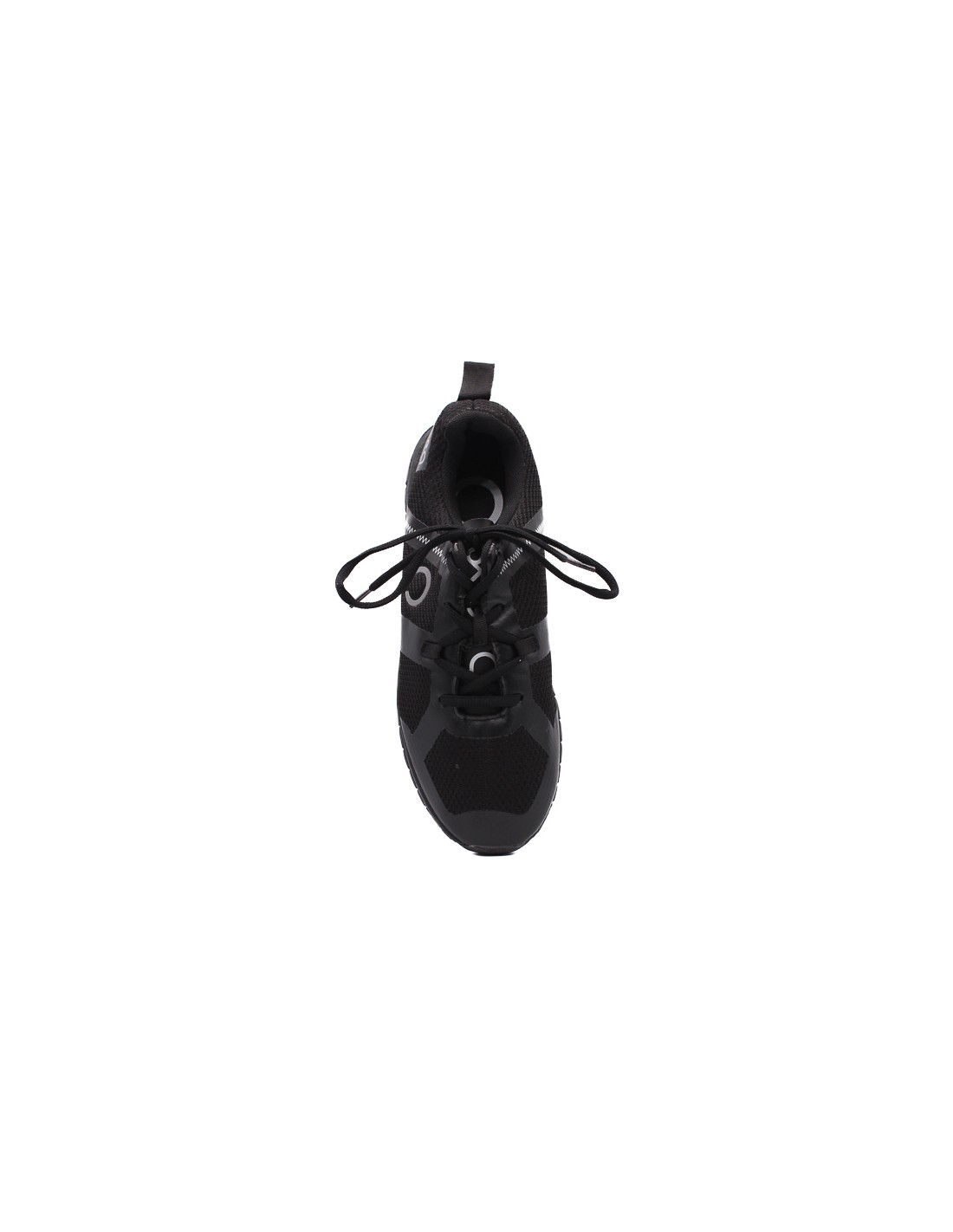 Zapato deportivo de mujer color negro material de malla transpirable textil con cordones parte interna acolchada suela material goma duro