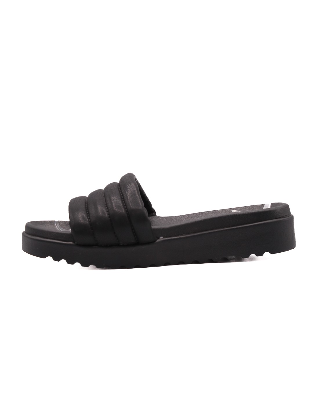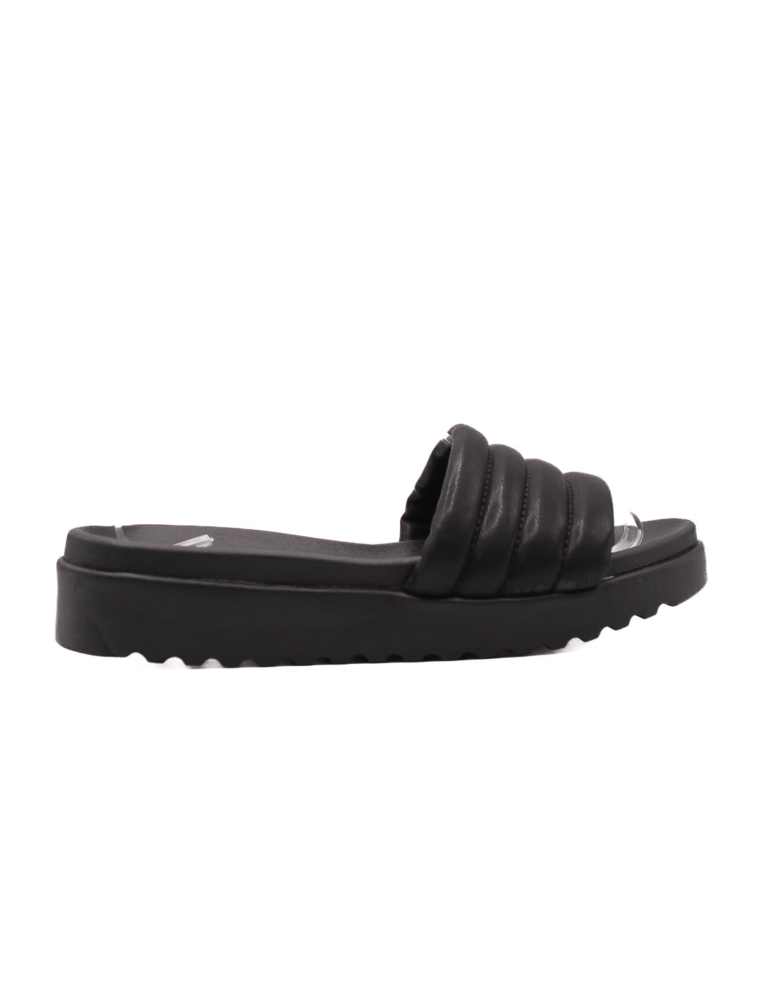 Sandalia de mujer color negro con tira hancha acolchada plantilla material sintetico con plataforma material de goma