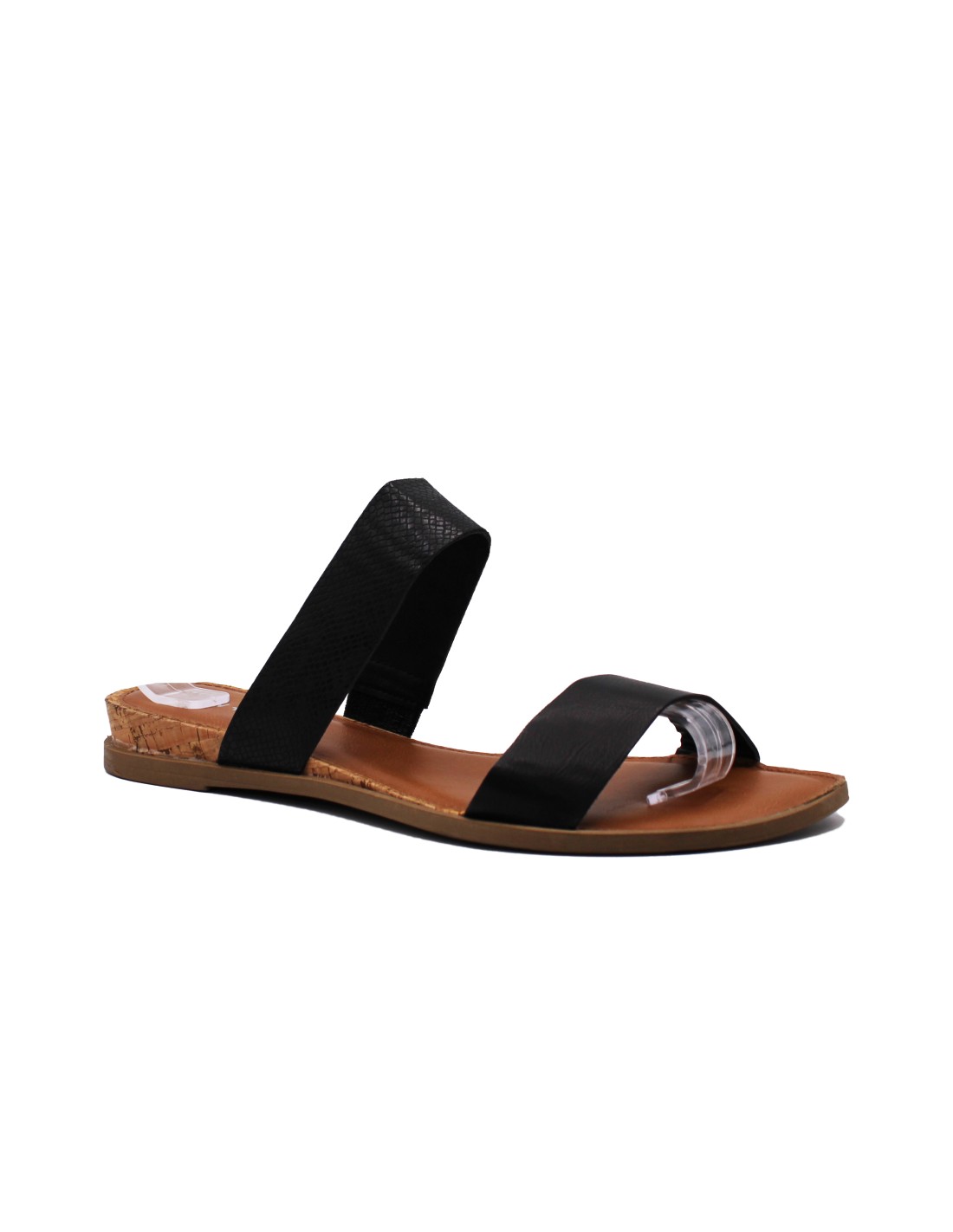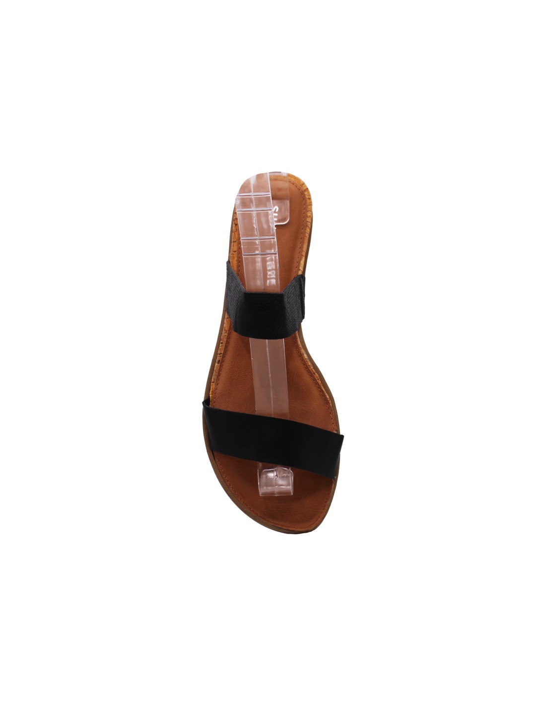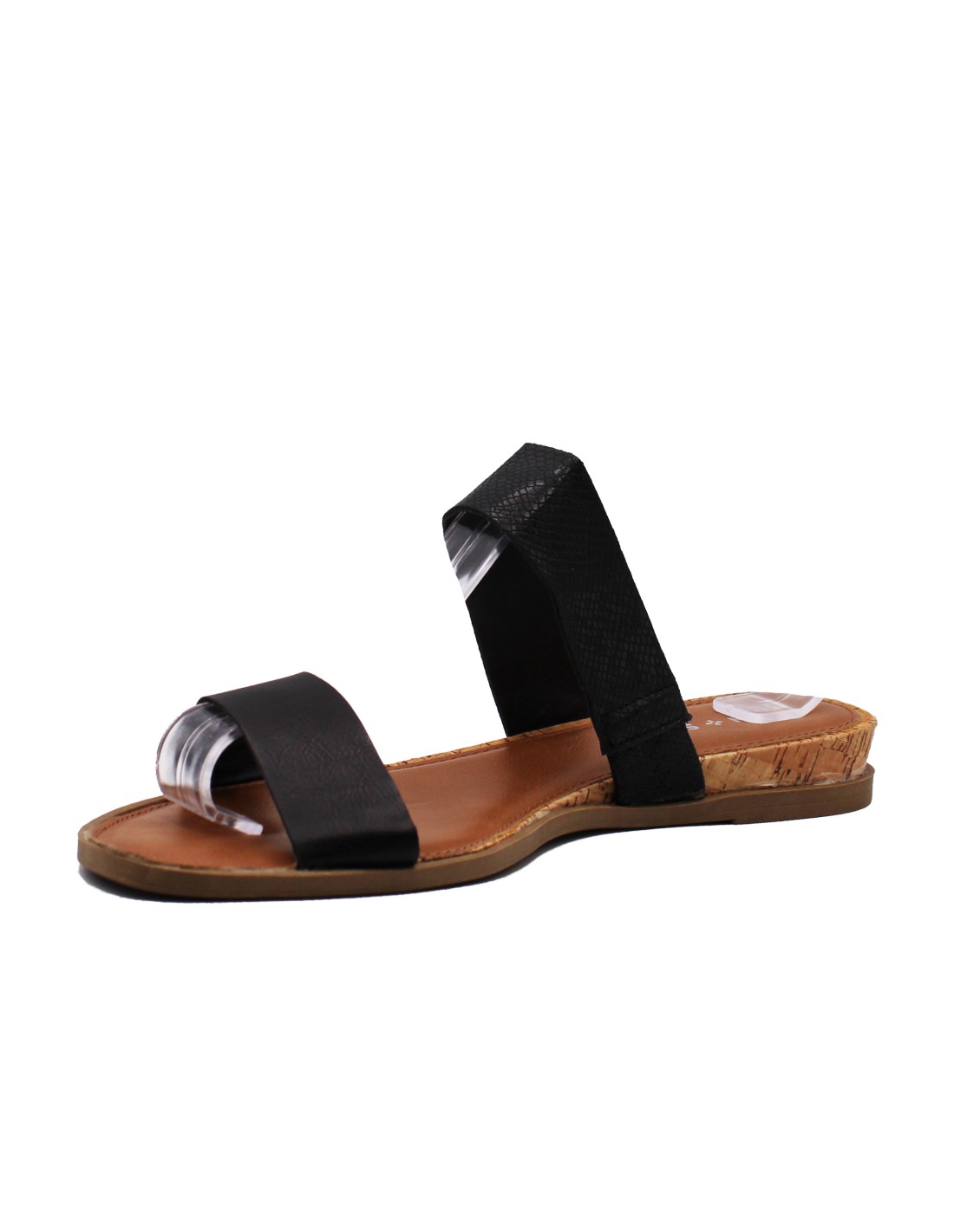Sandalias de mujer, tiras color negro suela detalle de corcho y café