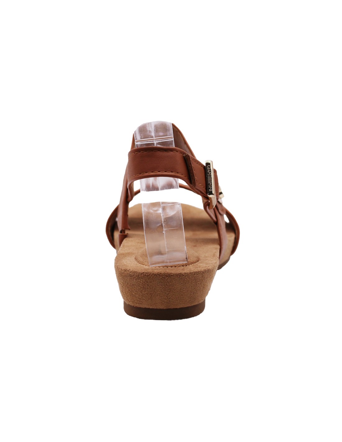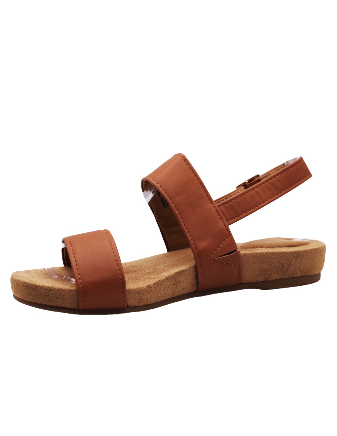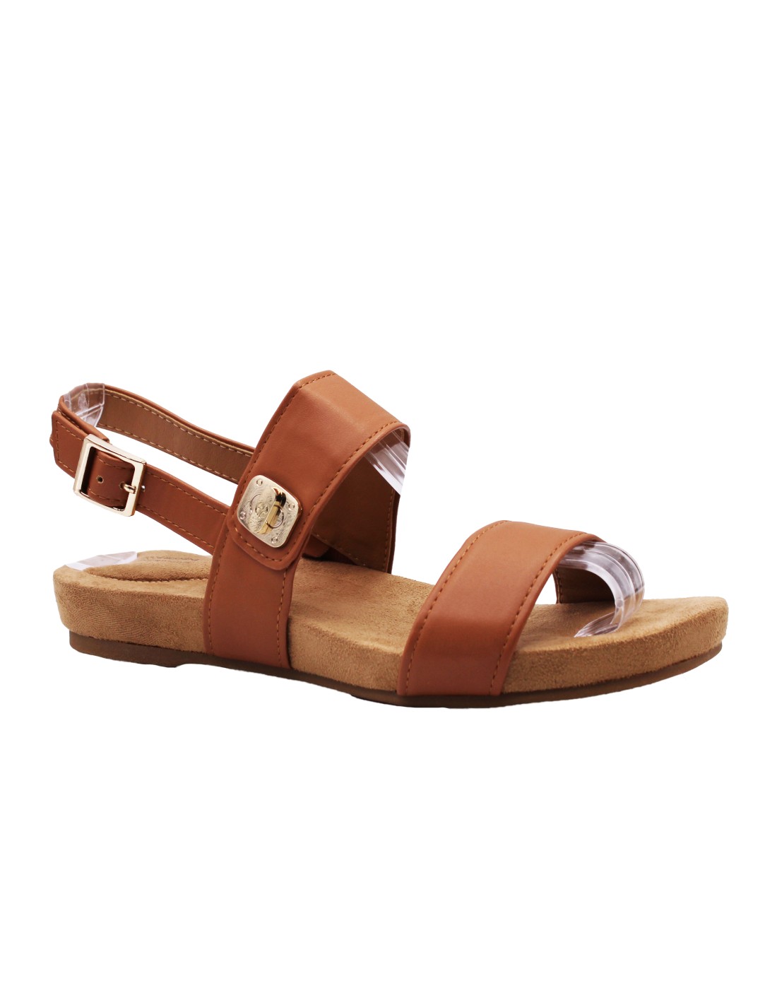 Sandalias de mujer color café material cuerina con tiras y hebilla suela de gamuza